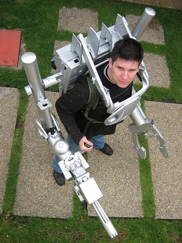 Despite the impressiveness of the armament, I think the best part is how he made the backpack with the "jet ports" out of a broken typewriter.